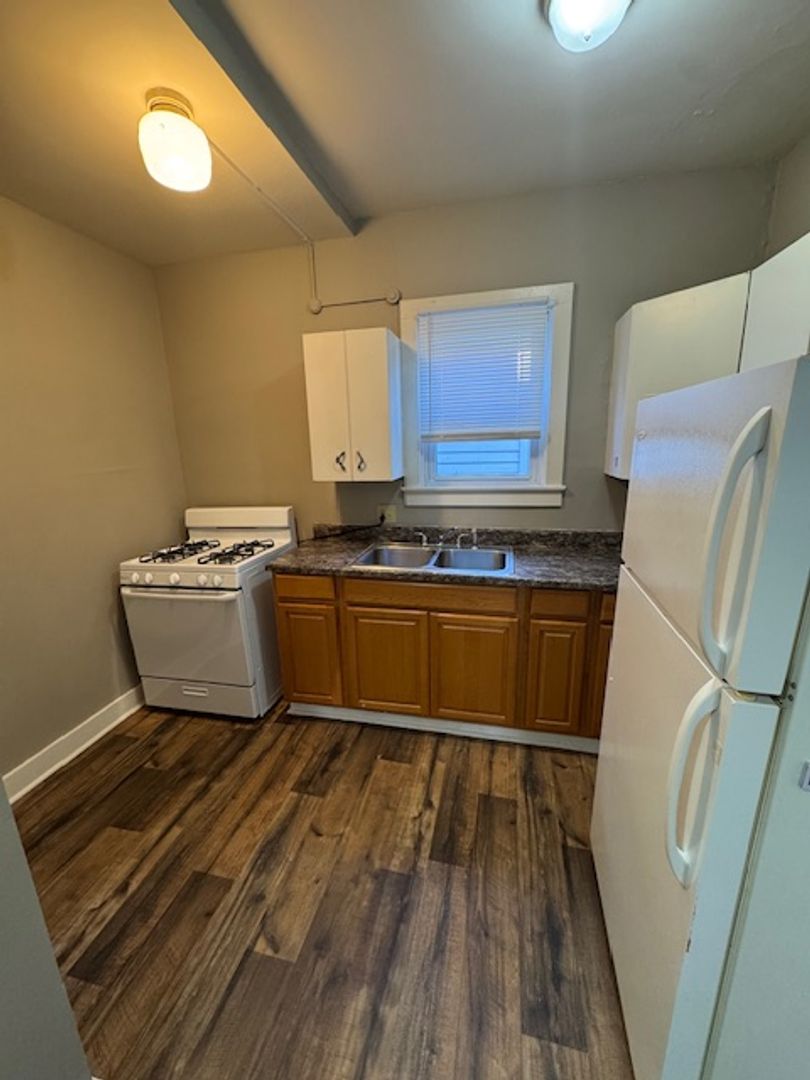 Check this one out! Brand new from studs on out .Its a 1-bedroom lower apartment with new windows, flooring, bathroom, kitchen! All new electric service and off-street parking. Tenant pays 40.00 water.