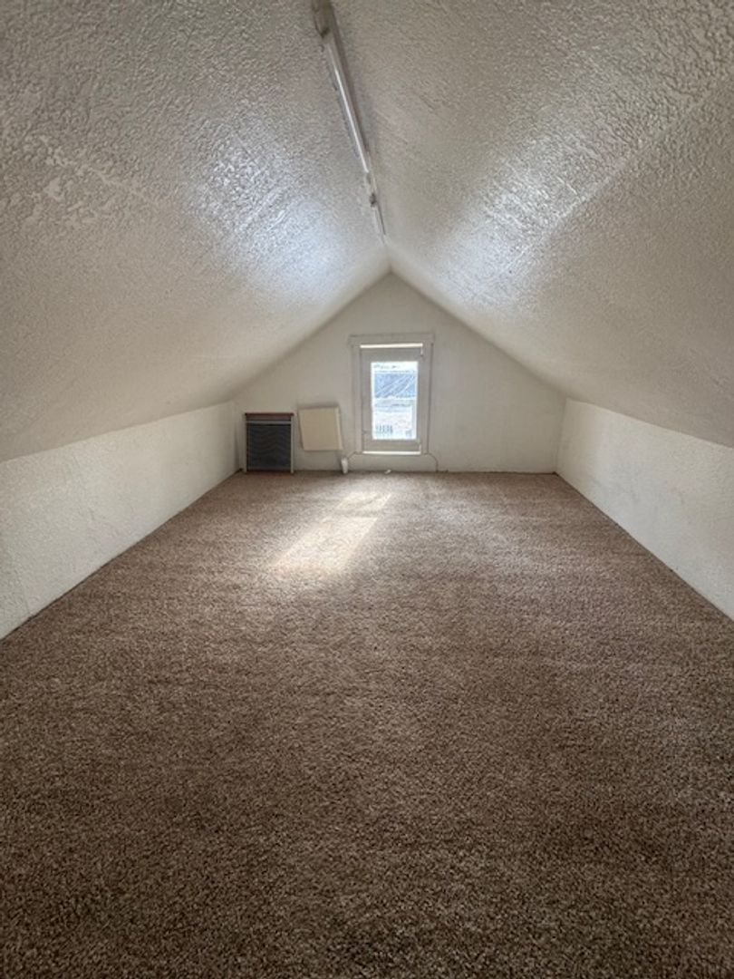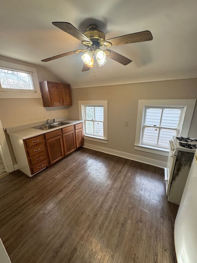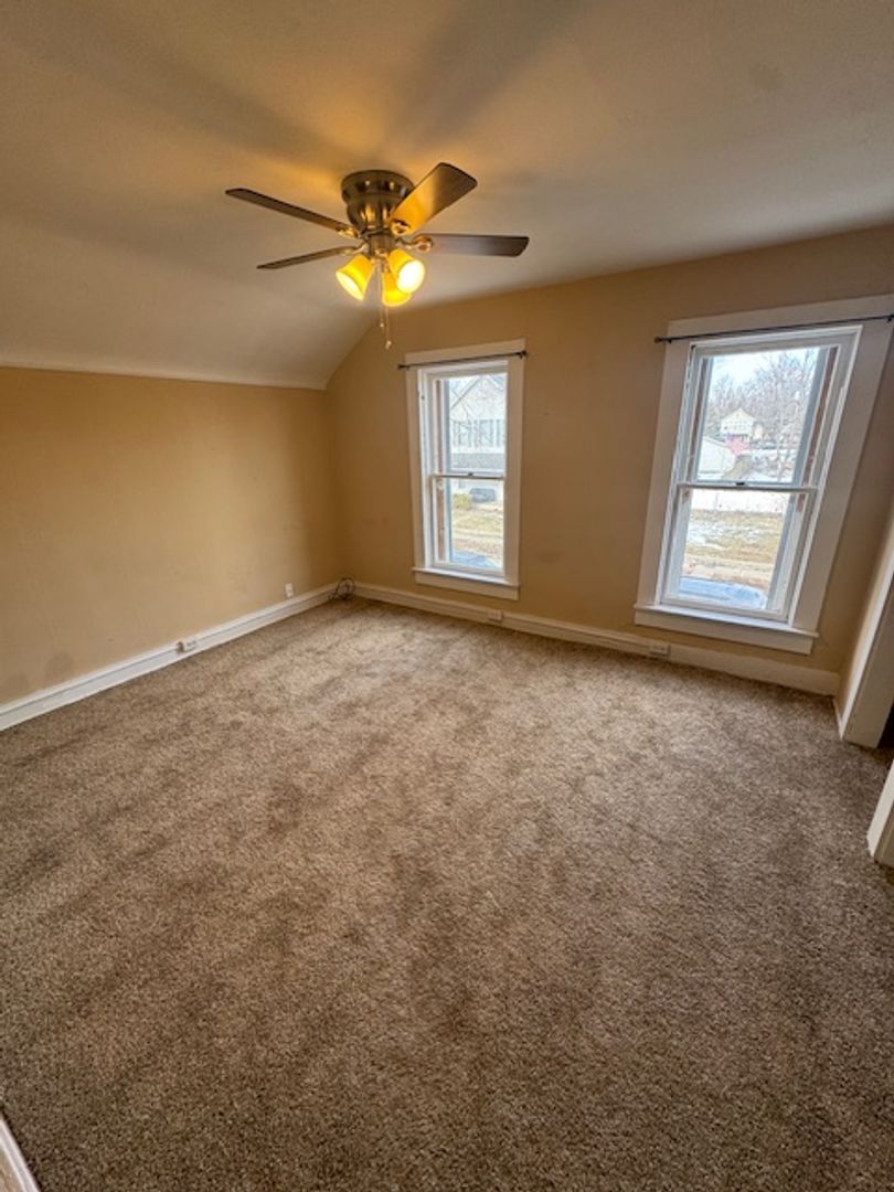 I like this upper unit! So much space! New windows, new flooring, new interior paint, eat in kitchen, with front door entry! All utilities into one monthly $120. fee!