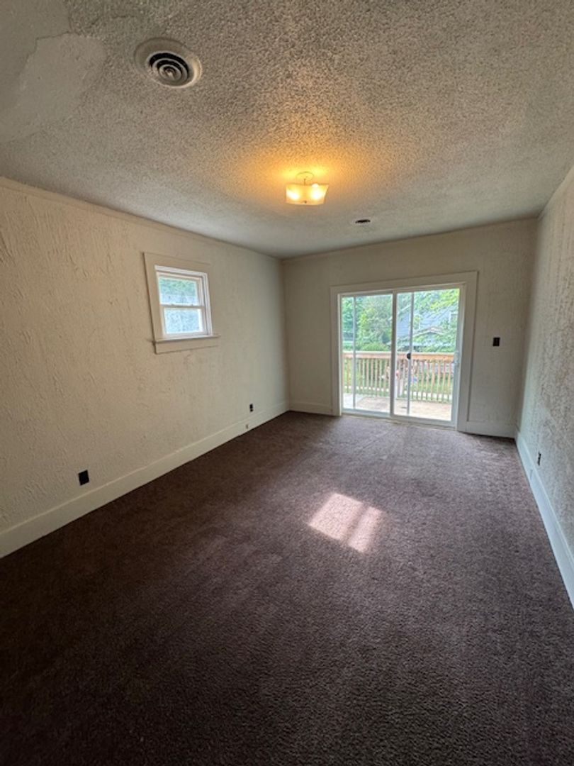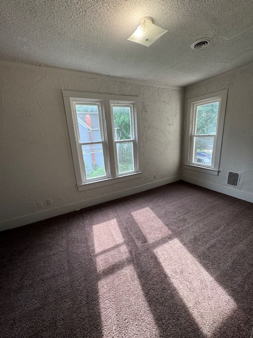 Huge 2 -bedroom upper apartment! Separate entrance, large rooms W/ NEW carpet, balcony, off street parking. Owner does exterior maintenance! Tenant pays elect & gas and billed $40 per month for the water.